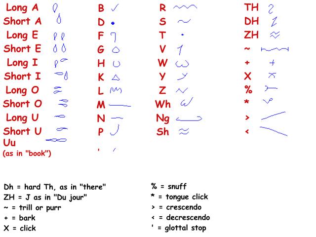 Islandish does contain several sounds not found in English, such as the snuff (burst of air through the nose), tongue click, throat click, bark and trill. The crescendo and decrescendo are usually only written down for pups just learning to read, to teach them where to put emphasis is a word.